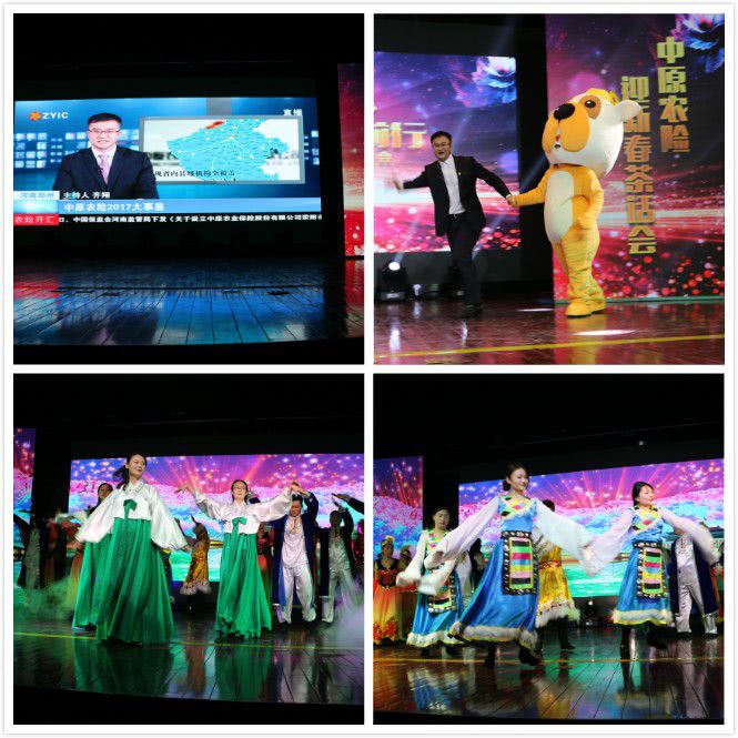 茶话会上,总公司各部门、省运营中心,郑州、开封、洛阳、安阳、新乡、濮阳、商丘、周口、鹤壁等9个分支机构(服务组)用歌声、舞蹈、语言来表达对中原农险的热爱。歌舞类、小品类、语言类节目轮番上演,掌声、叫好声、欢笑声不绝于耳。每个精彩节目的背后都是各部门、各机构精心组织排练的结晶,表达了中原农险人对新年的祝福、对公司的祝愿及团结奋进的精神面貌。