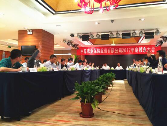 2018年4月28日,公司2017年度股东大会在郑州美豪诺富特酒店召开。会议由公司董事长毕治军主持,17家股东单位派均代表出席会议,监事长刘颂正参加会议。审计责任人古文洪、董事会秘书李万峰、财务会计部总经理彭旭、合规法务部总经理孔建立、资产管理部副总经理张海东分别汇报了相关议题。会议全部议题均顺利通过。