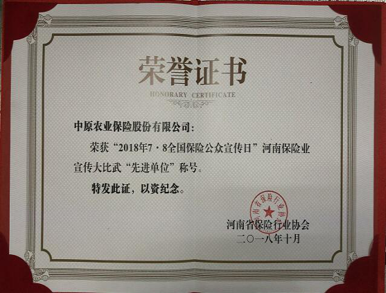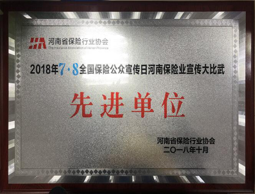 12月6日,河南省保险行业协会下发《关于河南保险业2018年“7·8全国保险公众宣传日”活动开展情况的通报》,我公司组织的“7·8”专项宣传活动再获奖项。