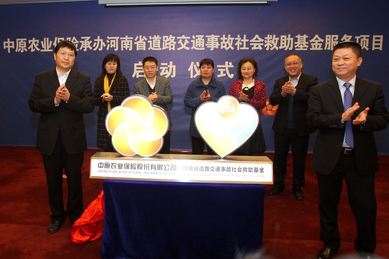 2016年3月18日上午,“中原农业保险承办河南省道路交通事故社会救助基金服务项目启动仪式”在郑东新区商务外环路20号海联大厦成功举行。河南省财政厅、河南省公安厅、河南省卫生和计划生育委员会、河南省民政厅、河南省农业机械管理局、河南保监局等救助基金管理领导小组主要成员均出席该启动仪式。