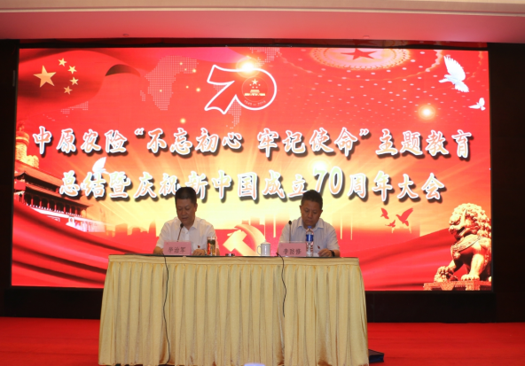 不忘初心、方得始终,牢记使命、砥砺前行。在新时代的伟大征程上,中原农险人以坚定的理想信念坚守初心、以真挚的为民情怀滋养初心、以强烈的政治担当践行初心,把初心使命转化成争先进位的精气神和苦干实干的自觉行动,为持续推进公司高质量发展提供坚强有力保证,以实际行动向新中国成立70周年献礼。