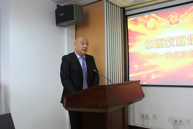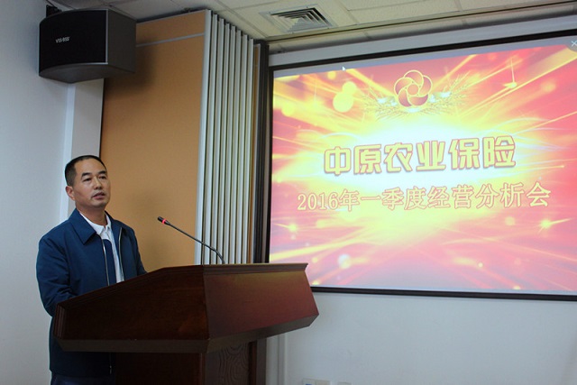 经过多部门的充分准备,4月23日,公司2016年第一季度经营分析会在郑州召开。会上,公司各业务主管领导对第一季度的业务经营情况进行了分析,业务先进单位代表做了典型发言,总裁姜华对公司第一季度整体经营情况做了分析,并安排部署第二季度工作,董事长毕治军在会上做重要讲话。公司高管、各部门总、市级分支机构负责人及部分县级分支机构代表参加了会议。