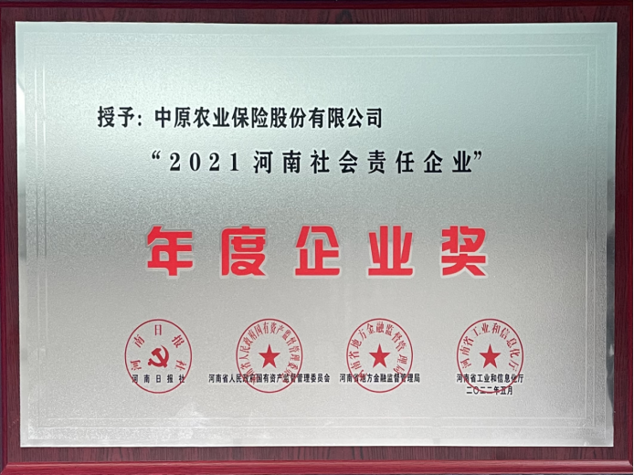 7月2日,由河南日报、省国资委、省地方金融监管局、省工信厅联合主办的“2021河南社会责任企业及社会责任突出贡献企业家”推选活动颁奖典礼在郑州举行。经过资料审核、网络投票、媒体公示、专家评审等环节,公司荣获“2021河南社会责任企业”。