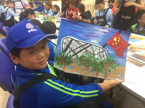 在10月5日“梦响最强音·第二届兰考儿童北京语言文化之旅”的闭营式上,孩子们展示了在北京游学四天中创作的美术、扎染等作品。
