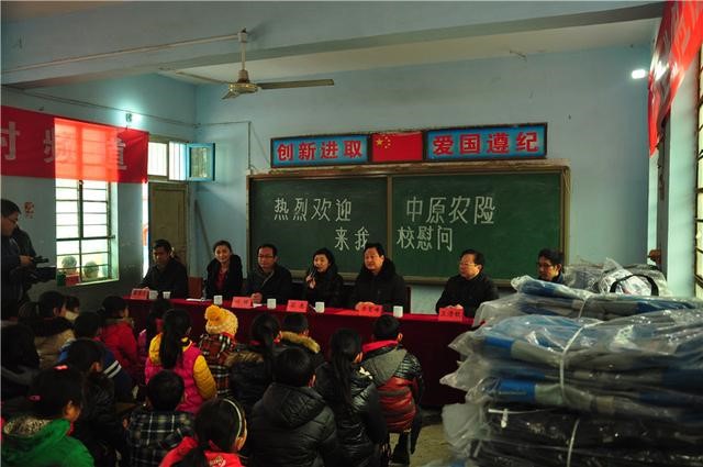 中原农险在社旗县向孩子们赠送温暖大礼包