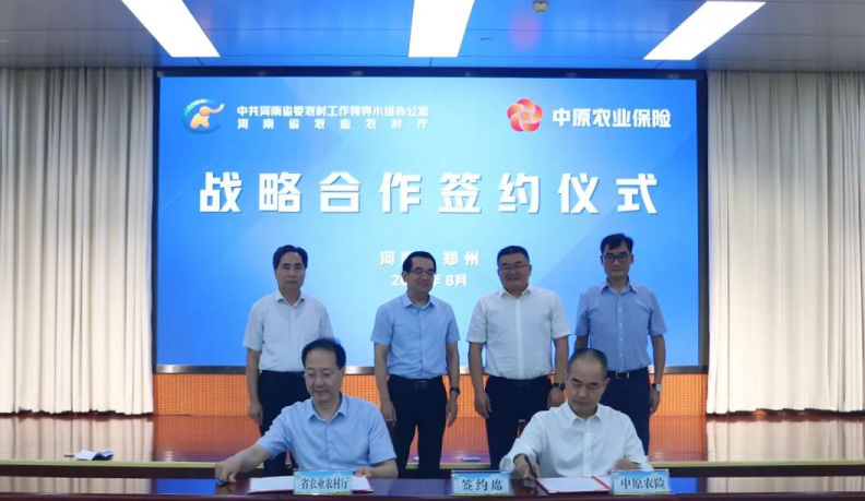 河南省农业农村厅一级巡视员马万里,副厅长谢长伟,中原农险总会计师狄绯,副总经理雷廷军等相关领导参加签约仪式。