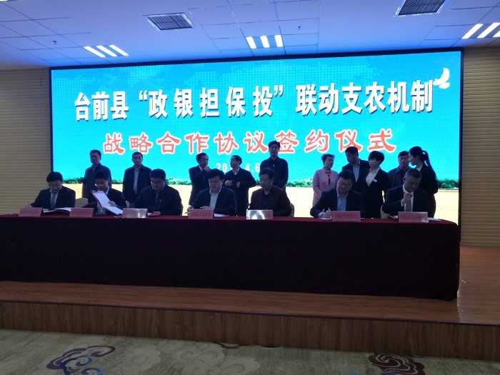 2017年4月6日下午,台前县“政、银、担、保、投”联动支农机制战略合作协议签约仪式在台前县举行。省财政厅副厅长张中亮,濮阳市副市长吴新普、濮阳市财政局副局长宋玉清,中原农险公司、中原资产管理公司、省农开公司、省农担公司、省豫资公司、省扶贫搬迁公司、省邮储银行主要负责人,台前县县委书记常奇民以及各县直部门、各乡镇、金融机构、知名企业主要负责人参加签字仪式。