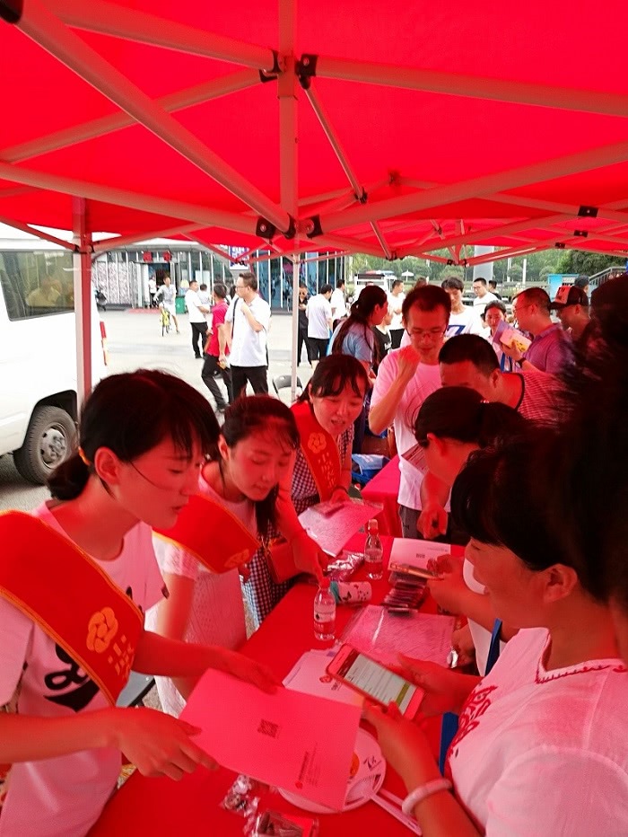 7月8日傍晚,公司董监办、商险部、互联网保险部、道交服务中心及郑州道交服务站的同事又跟随省保协的步伐来到了“保险进广场”活动的现场。公司的展位刚布置妥当,热心的市民便蜂拥而至,咨询着各类有关公司业务及道交基金救助的问题。公司的各位同事一边热心的解答着各种问题,一边分发公司宣传材料,让市民们扫描公司微信号二维码,极好的宣传了公司的产品及形象。