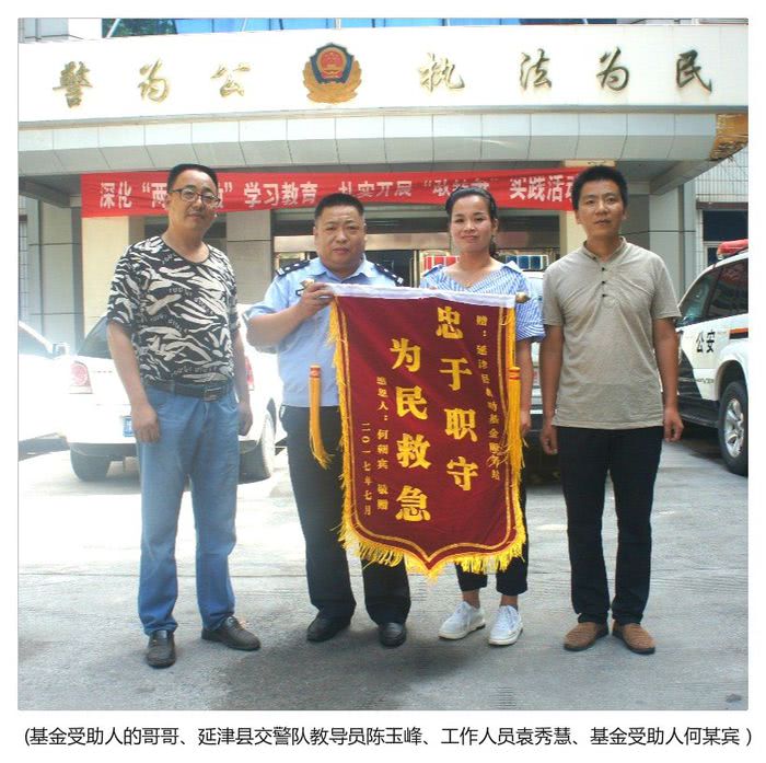 8月1日,基金受助人何某宾及其哥哥来到延津县服务站,将一面印有“忠于职守 为民救急”的锦旗亲自送到了服务站工作人员手中,感谢中原农险工作人员的帮助,感谢救助基金的救命之恩。