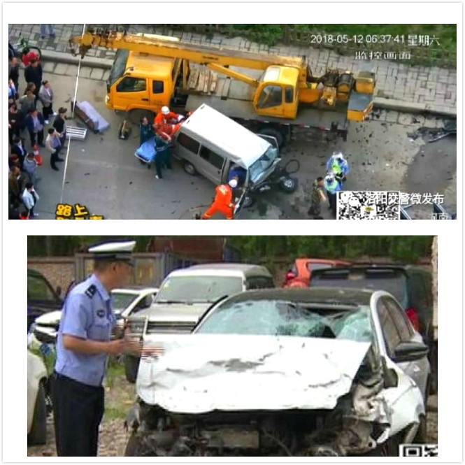 5月12日早上6时左右,洛宁县发生一起重大恶性交通事故,一辆白色轿车在道路上未采取任何制动措施的情况下,撞翻一辆骑电动车的驾驶人后,与对向车道面包车再次发生激烈碰撞,造成2死6伤的严重后果,事故发生后肇事者逃逸。