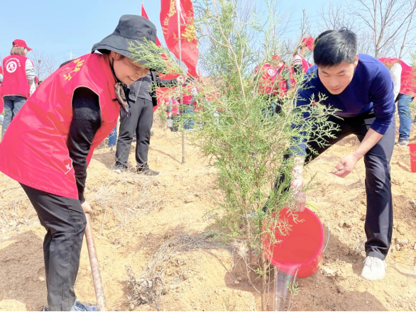 春回大地万物苏,植树添绿正当时。活动中,志愿者们同心协力,团结合作,刨坑、翻土、放树、填土、夯实、浇水,他们挥舞着铁锹,挥洒着汗水,细心种下一棵棵树苗,以实际行动践行绿色发展理念,用欢笑和汗水为登封陈家门增添了一抹亮丽的新绿。