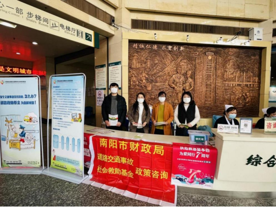 2023年3月30日,南阳市救助基金管理办公室与南阳市服务站前往南阳市中心医院开展宣传。