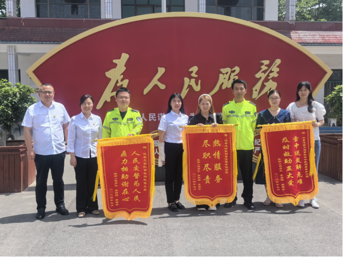 2024年5月11日上午时分,受助人焦先生的亲属李女士特意来到浚县交警大队,向浚县交警大队以及浚县道路救助基金服务站献上了三面锦旗。