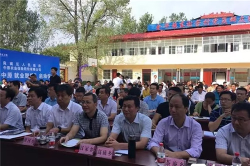 9月15日,全市“牵手中原,就业脱贫”行动首个启动仪式在宛城区金华镇成功举办,市委常委、宣传部长张富治,中原农险总裁姜华,省财政厅金融处副处长张延安、中原农险种植业部总经理王俭波、市扶贫办主任周大鹏、市金融办副主任曹鹏,区领导樊牛、陈明远等出席启动仪式。
