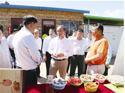中国人民保险集团吴焰董事长、中国人民财产保险股份有限公司林智勇总裁赴三门峡市卢氏县调研“政融保”项目。 甘金文/摄