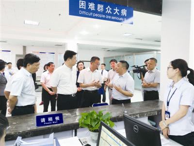 2017年5月,国家人社部游钧副部长带领国务院相关部委领导来到郑州市人社局服务大厅1号困难群众大病补充保险窗口,了解人保健康郑州公司为困难群众服务情况。河南省政府王梦飞副秘书长、省人社厅刘世伟厅长、郑州市政府刘东副市长等领导一同调研。 姬宾/摄
