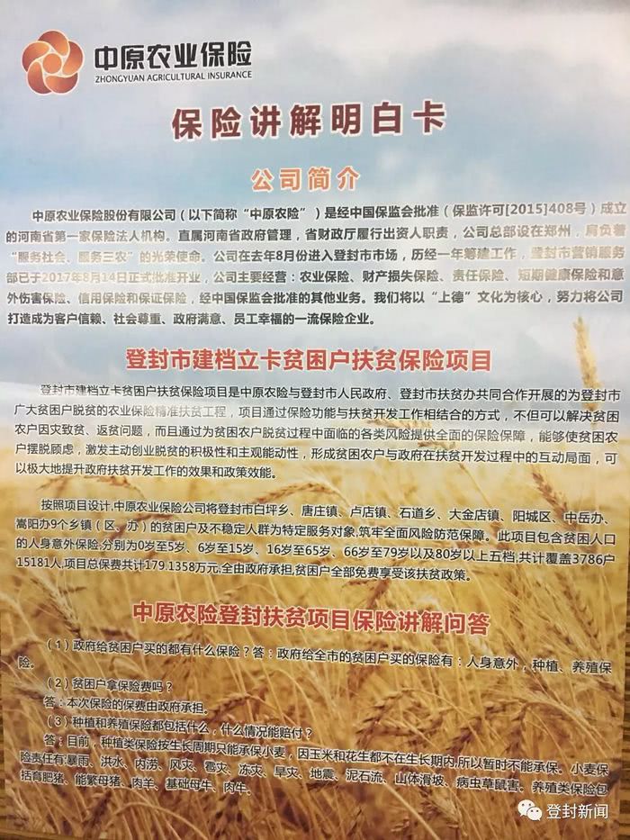 受益的这个“政策”,源于168飞艇官网直播在我市开展的扶贫保险项目。这个项目是由市政府出资179万元,为白坪、唐庄、卢店、大金店、阳城、中岳办、嵩阳办等乡镇办的建档立卡贫困户提供服务,包括人身意外保险,筑牢全面风险防范保障。
