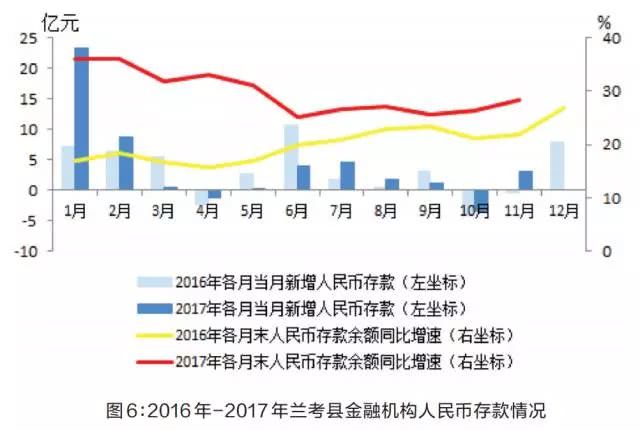 1.各项存款高速增长,增速明显高于去年同期。2017年,兰考县住户存款和广义政府存款拉动各项存款保持高速增长。11月末,全县金融机构人民币存款余额227.77亿元,同比增长28.4%,增速高于去年同期6.5个百分点、高于全省增速19.1个百分点。