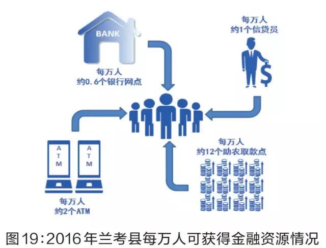 3.完善金融服务体系。一是下沉公共金融服务。人民银行郑州中心支行率先在兰考县试点建设首个公共金融服务大厅,把货币发行、国库、账户、征信、金融消费权益保护等与群众密切相关的业务集中办理。设立县级再贷款(再贴现)窗口,与金融机构落实普惠金融工作情况对接。建立县级农户和中小微企业信用信息中心,并具有信用评级功能,供金融机构查询,农户信息涵盖168项指标、中小微企业信息涵盖447项指标,有效对接金融扶贫和普惠授信。二是金融机构推出特色化产品。推出30余种“普惠型”信贷产品,特别针对建档立卡贫困户推出产业发展信用贷、针对一般农户推出普惠授信贷款、针对农业经营主体及小微企业推广“三位一体”贷款、针对产业链龙头企业带动农户的大额信贷需求推行产业链融资模式等主打产品,让贫困户、已脱贫户、非贫困户都能享受到适合自身发展生产需要的金融服务,实现金融扶贫与金融普惠的有效衔接。三是设立奖补政策和风险分担体系。县政府出台金融业发展、上市挂牌补助等奖补政策;制定信贷风险补偿基金和还贷周转金管理办法、中小微企业发展基金运作实施方案、财政性涉企资金基金化改革实施意见,设立金融扶贫、普惠授信等各类信贷风险补偿基金7575万元、还贷周转金2400万元。