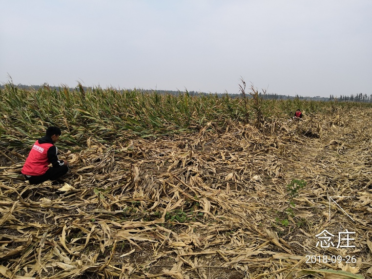 图为不久前该公司员工现场查勘受灾玉米。波兰/摄影报道