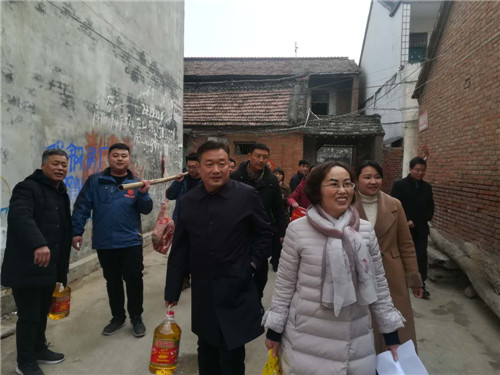 当日下午,该公司总经理梁海涛一行首先来到张庄社区陶保阵家中进行慰问,为他送去了米、油、肉、春联等节日用品,并向其和家人致以节日的美好祝福。今年47岁的陶保阵是一名退伍军人,小儿子在部队服役,因病目前陶保阵生活不能自理,家庭生活困难。梁海涛详细了解陶保阵现在的身体情况和家庭情况,并对他曾经为国家和军队建设所做的贡献表示感谢,希望他保重身体,鼓励他要保持乐观的心情,坚定信心,克服困难。