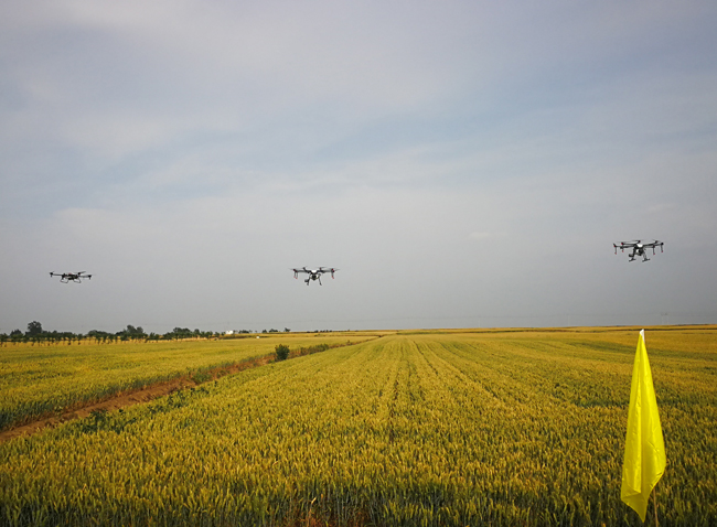 中国保险报网讯(沈春梅 记者 王彤 ) 5月1日至16日,在南阳市的唐河县、邓州市、内乡县等田间活跃着一个特别的团队——中原农险无人机植保服务队,他们利用无人机无偿为中原农险承保的部分小麦、林果等进行病虫害防治,受到了地方政府和广大农户的欢迎和称赞。这是中原农险创新举措服务夏收的系列重要举措之一。