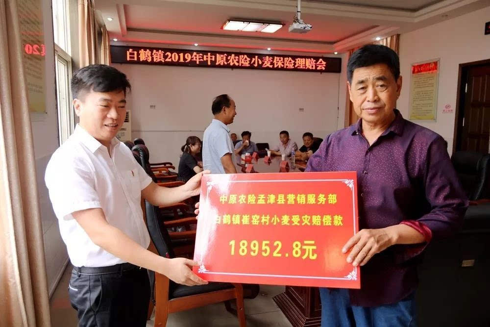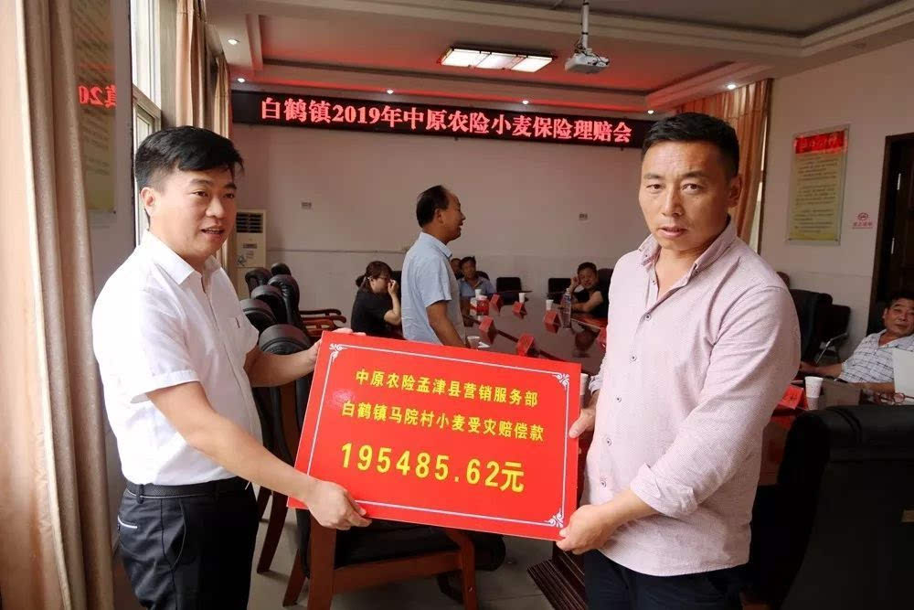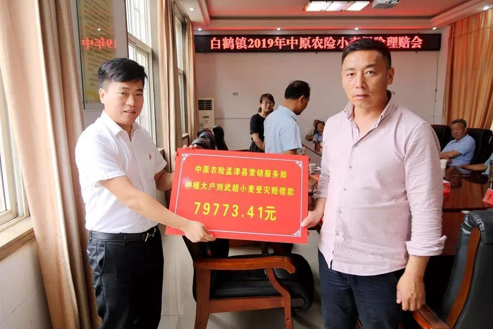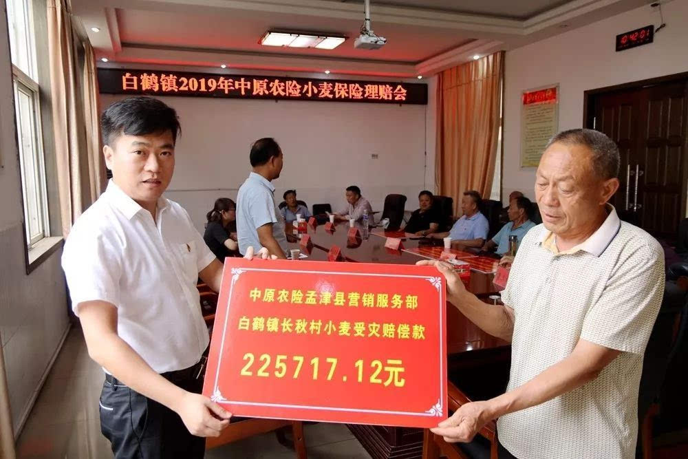 2019年6月21日上午,在咱白鹤后二楼会议室举行了白鹤镇小麦受灾理赔款发放仪式。中原农险孟津县营销服务部经理王玛珂、副镇长周晓晖、农业服务中心主任程志伟、马院村种植大户刘武超、赵岭村、王庄村、崔窑村、马院村、柿林村、长秋村受灾代表参加了此次发放仪式。