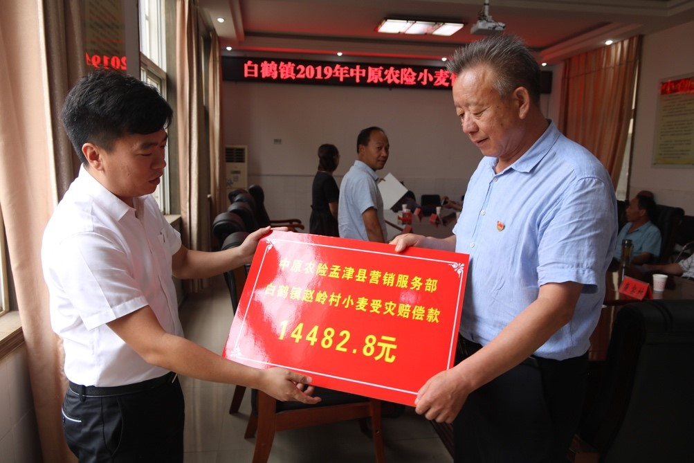 灾情发生后,中原农险孟津县营销服务部第一时间启动应急预案,开辟绿色理赔通道,安排人员和农业专家逐村逐户实地查勘。根据县农业农村局专家现场定损,中原农险研究决定,为此次受灾小麦绝产的农户预先赔付90.48万元,其他受灾群众待农业专家出具鉴定报告后一并赔付。6月21日,中原农险孟津县营销服务部在白鹤镇举行小麦受灾理赔款发放仪式,当地种植大户代表和部分受灾村民参加发放仪式。
