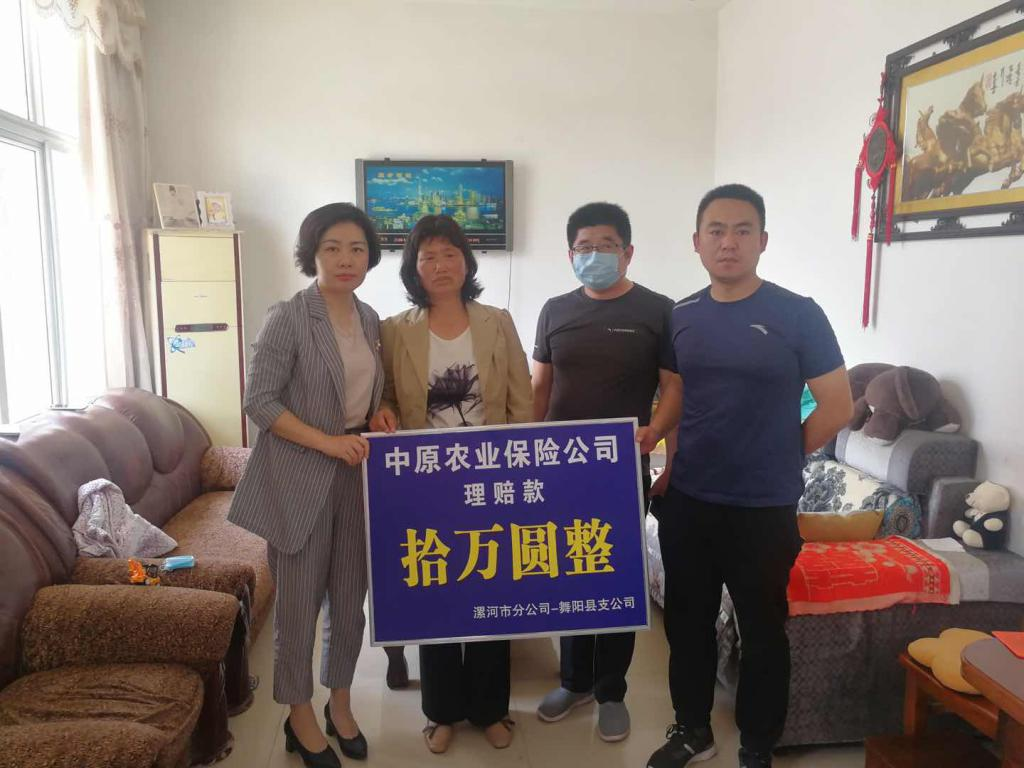 3.4 月底,舞阳县九街镇马岗村公务人员因意外不幸身故,我公司迅速启动理赔,雇主责任险 10 万理赔款快速到位,在灾难来临时,为他的家庭送去了一份温暖和保障,作为国企,我们勇于担当,灾难面前,中原农险彰显企业诚信,当您需要我们时,我们真诚服务!保险不能改变生活,但可以防止生活被改变(有图)。