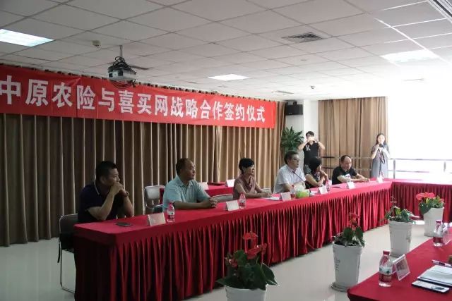 出席本次签约仪式的领导和嘉宾有河南省新闻出版广电局副局长崔为兵,中原农险董事长毕治军,喜买网总经理郑鸿雁、中原农险总裁姜华等。