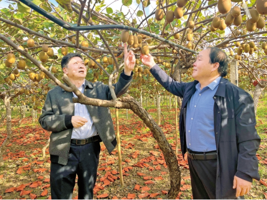 金融机构工作人员到猕猴桃种植专业合作社查看收成情况。孟姝/摄