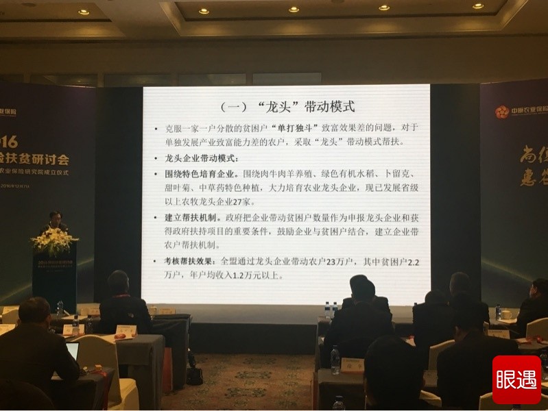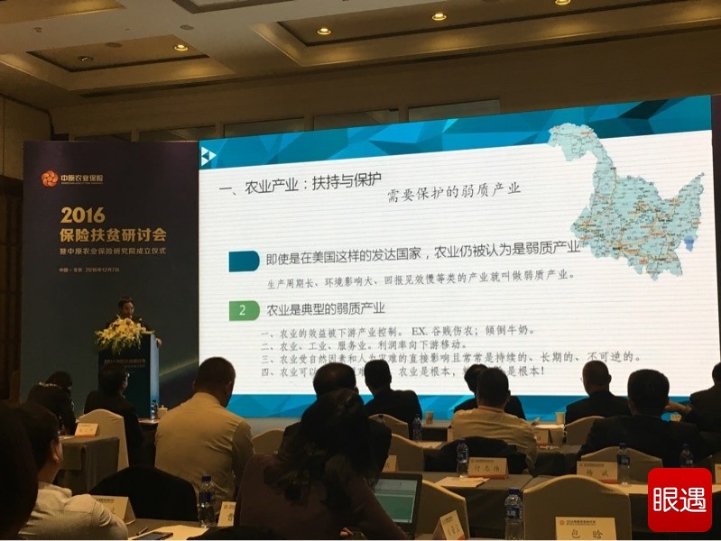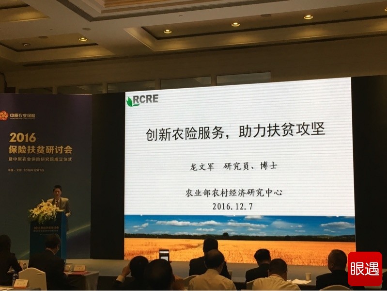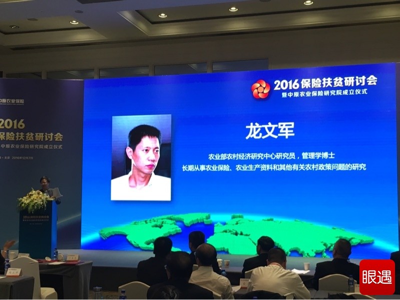 农业部农村经济研究中心研究员龙文军的主题发言是“创新农险服务,助力扶贫攻坚”。
