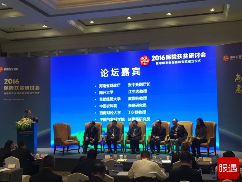 2016保险扶贫研究会观点聚焦:农业保险的创新发展与扶贫。国务院发展研究中心教授朱俊生主持对话论坛,嘉宾有河南省财政厅副厅长张中亮、南开大学教授江生忠、中国农业科学院研究员张峭、首都经贸大学教授庹国柱、西南财经大学教授丁少群、中国气象科学院研究员赵艳霞。都是全国知名高校大咖级教授及研究员。