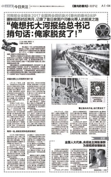 今年3月1日,大河报重磅推出《春光的春光》微纪录片,记录了兰考脱贫的故事,图为推出微视频当天的报样。