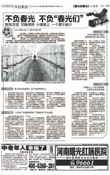 兰考的脱贫路,大河报是见证者,也是记录者。去年6月,大河报曾深入兰考等地,推出第一书记“下乡记”系列报道;今年全国两会期间,大河报重磅推出《春光的春光》微纪录片,将兰考脱贫攻坚的故事,浓缩在8分钟的光影之中。