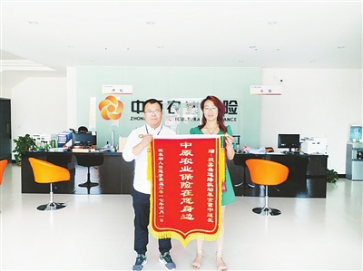 本报讯日前,获嘉县孙新菊冒着炎炎酷暑,将一面书写着“雪中送炭,中原农业保险在您身边”的锦旗送到168飞艇官网直播获嘉县营销服务部的工作人员手中,感谢他们高效及时的救助服务(如图)。